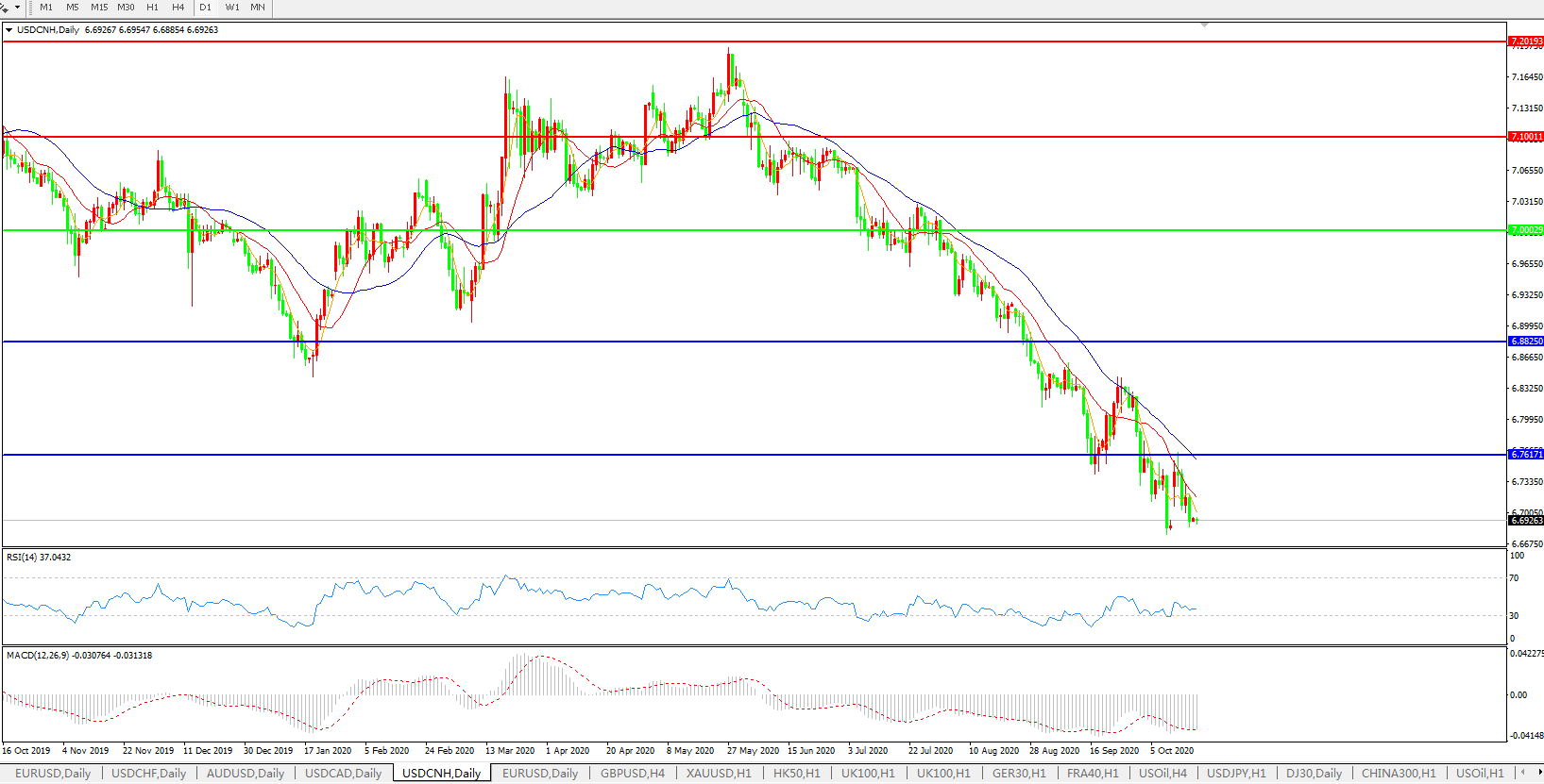 美元兑人民币USDCNH    日线图: