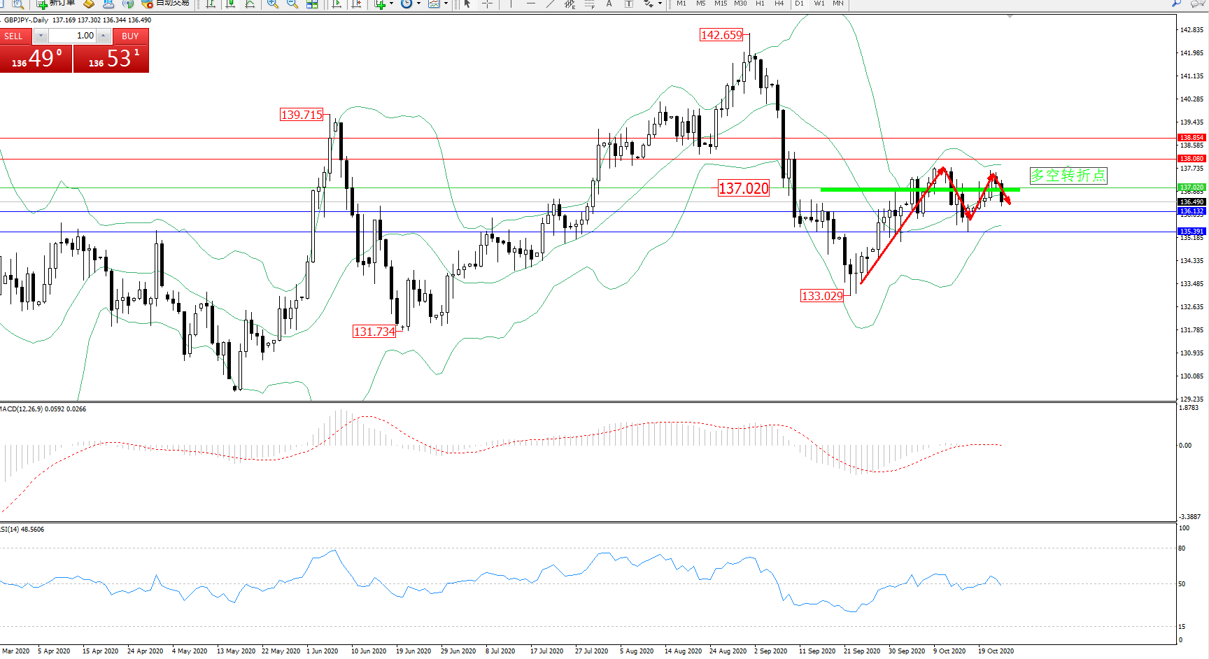 英镑兑日圆弱势震荡下移至136.490附近,英国与日本签署了一项脱欧后的贸易协议,这是英国脱欧以来与主要经济体签署的第一项贸易协议。日本外务省表示该协议在很大程度上保留了英国作为欧盟成员国与日本进行贸易的条款。英国国际贸易大臣特拉斯表示,该协议“具有广泛的战略意义”,它为加入全面进步跨太平洋伙伴关系协定(CPTPP)打开了一条清晰的道路,这将为英国商业打开新的机遇,并保障英国的经济安全。