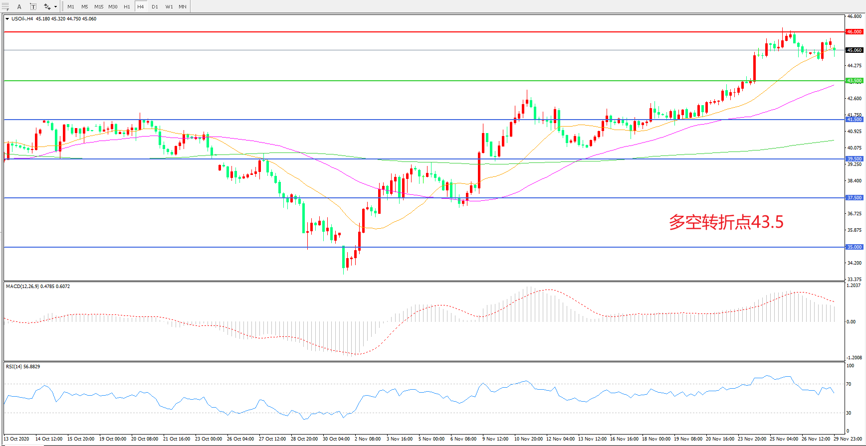 多空转折点:43.50