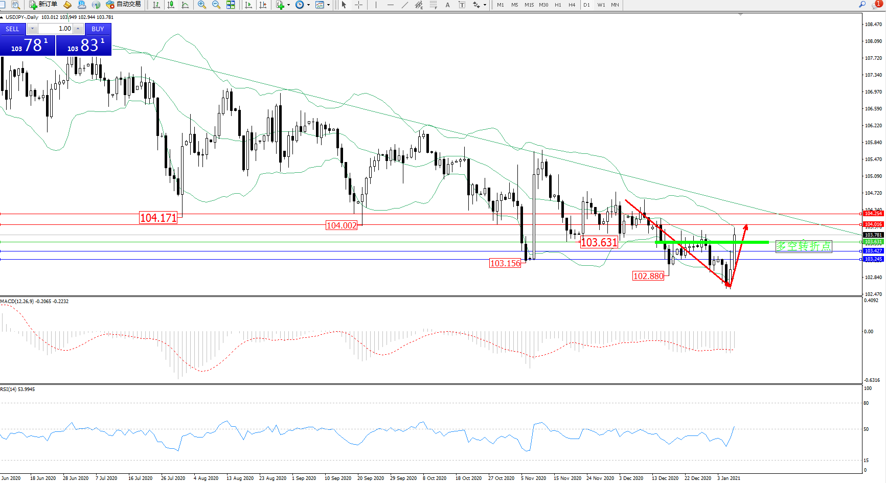 多空转折点:103.631