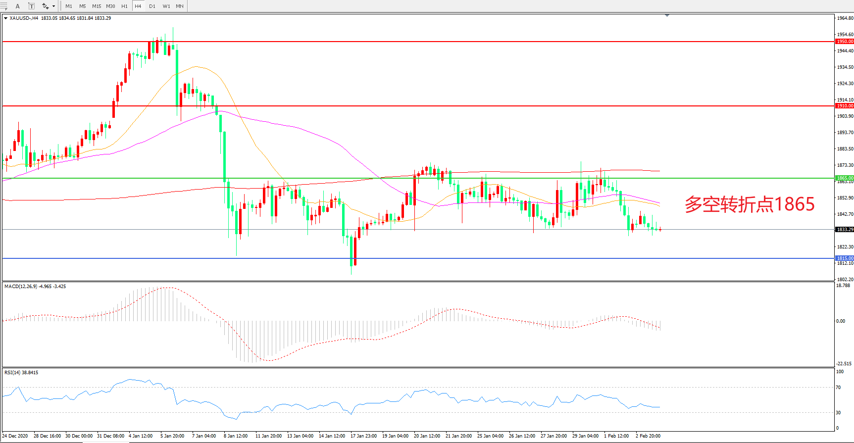 交易策略:在1865.00之下看跌,目标1815.00    1765.00