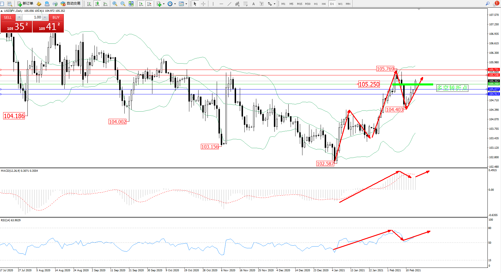 多空转折点:105.250