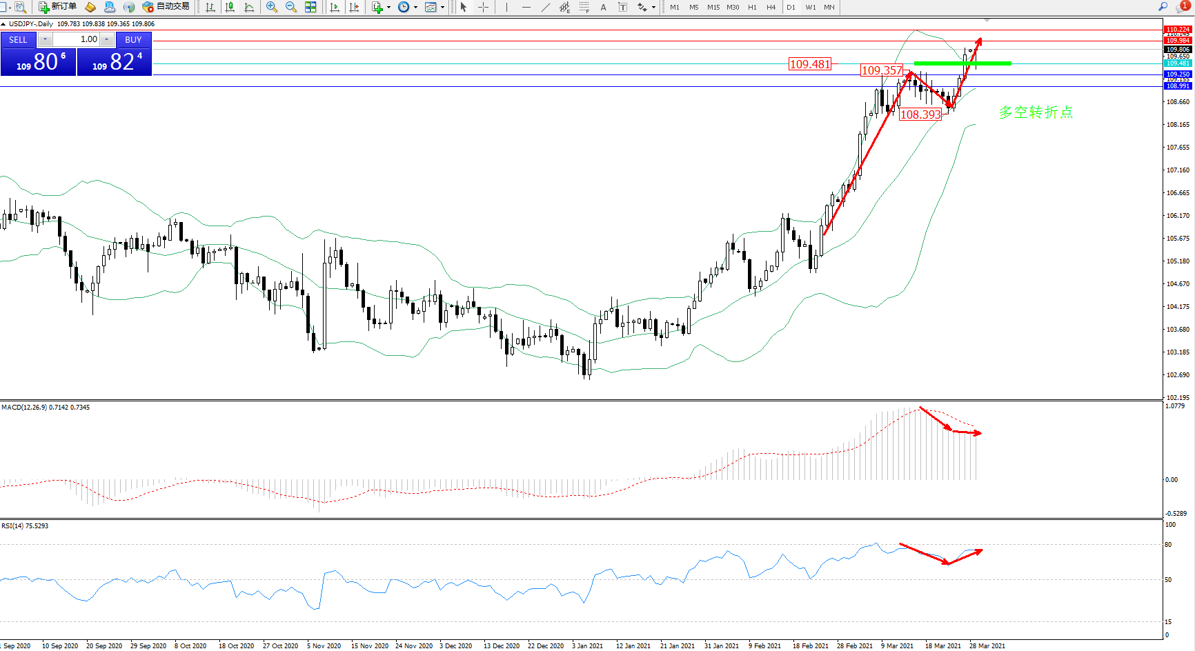 多空转折点:109.481