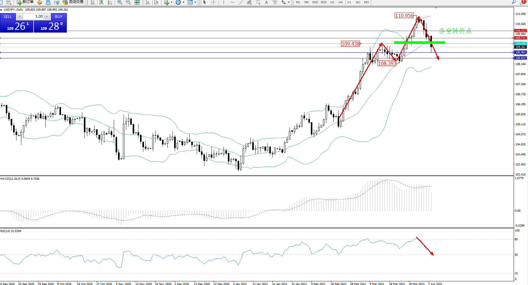 多空转折点:109.438
