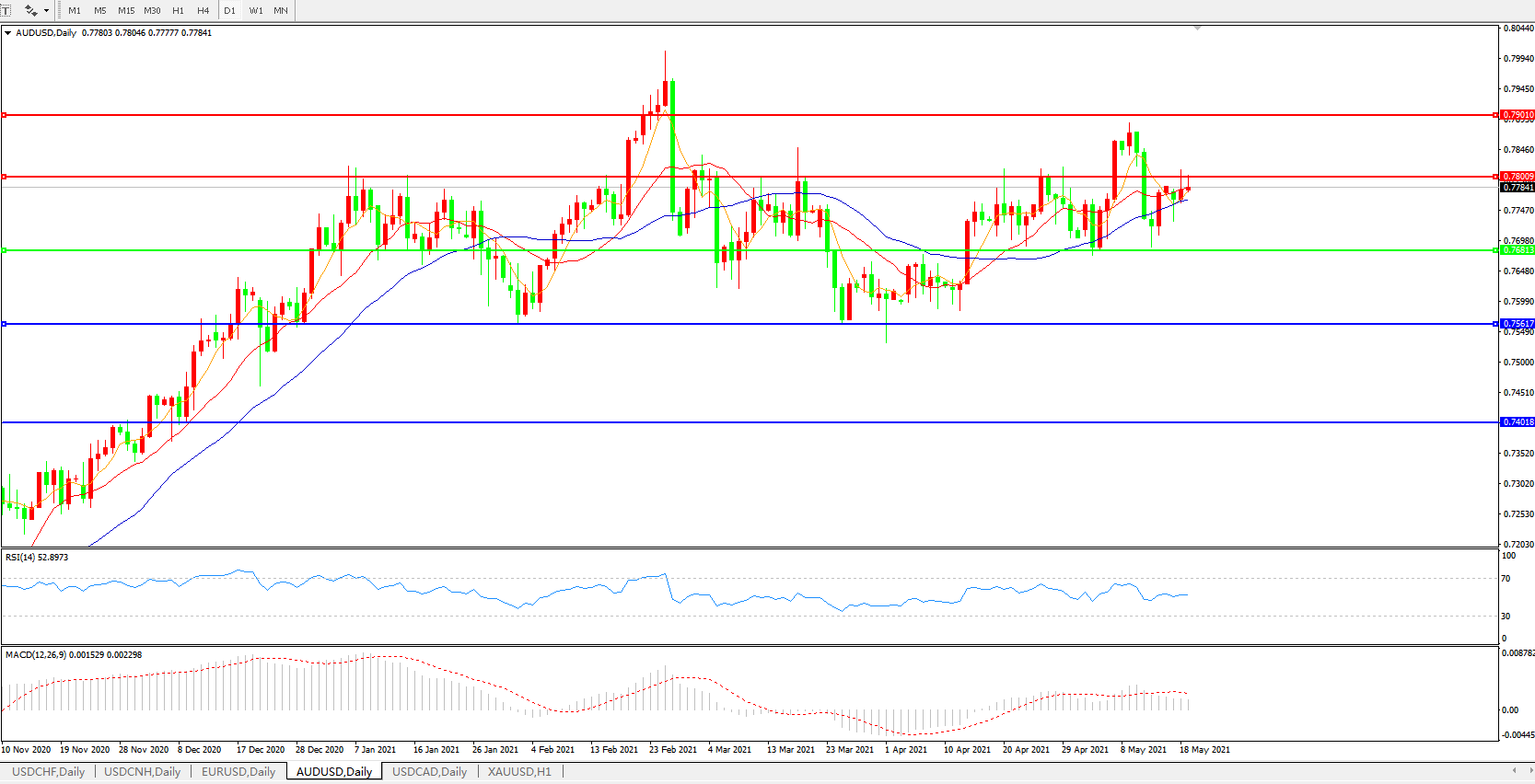 压制位:0.7800 0.7900