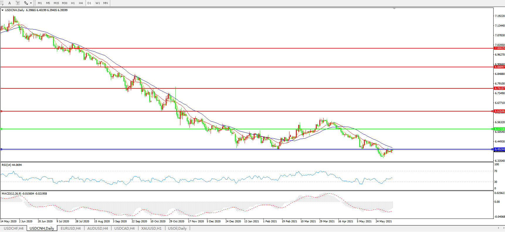 备选策略: 在6.5200之上,看涨,目标价位为6.6270,然后为6.7615。