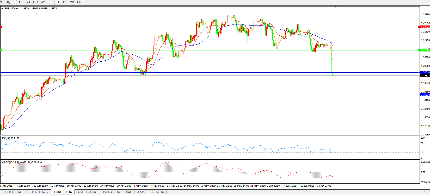 欧元兑美元EURUSD   4小时图: