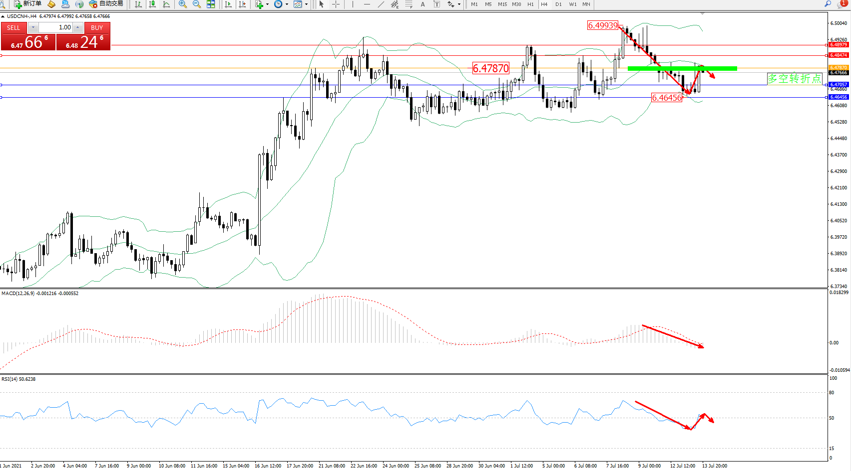 交易策略:6.47870下方看跌,目标6.47057、6.46456