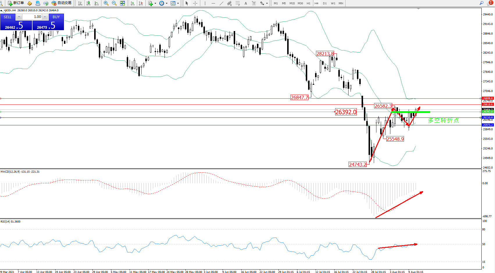 恒指HK50 ——4小时K线图显示: