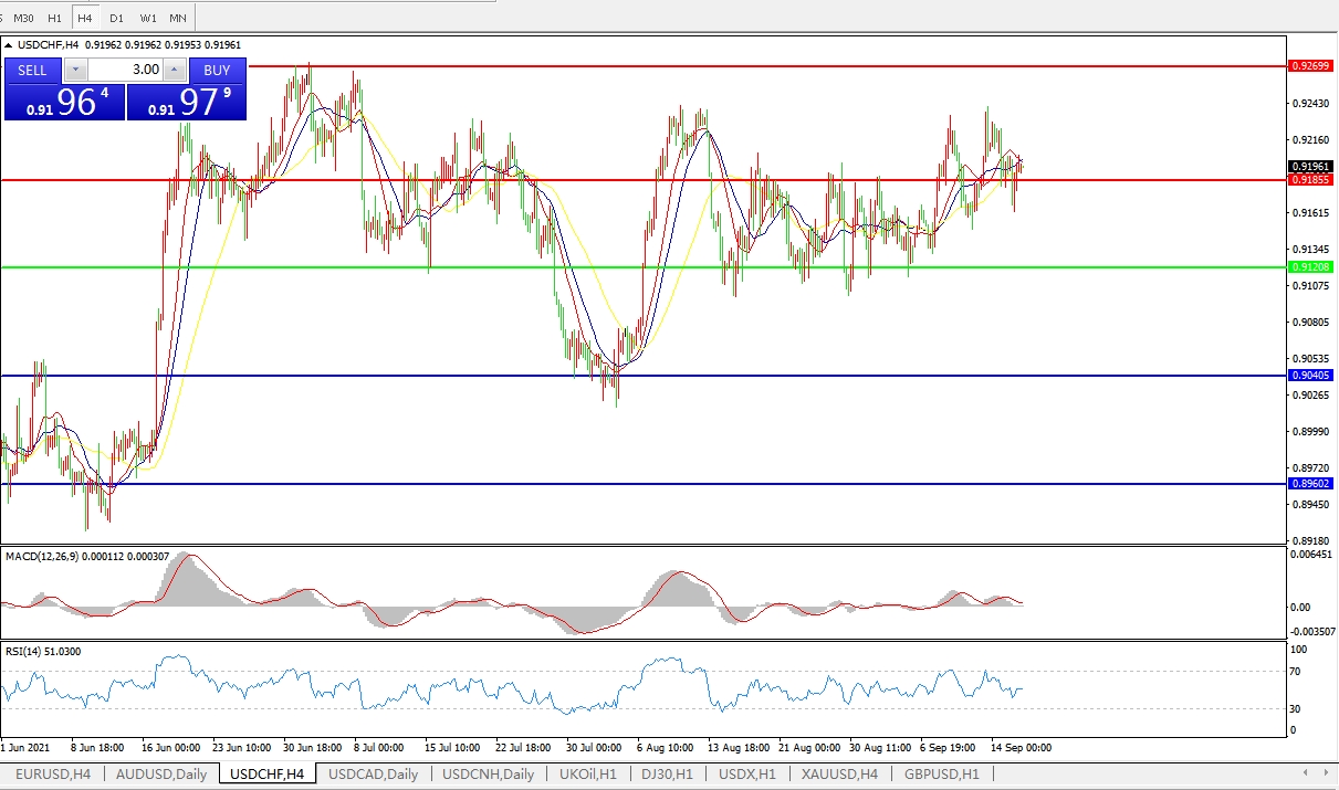 美元兑瑞郎USDCHF 4小时图:
