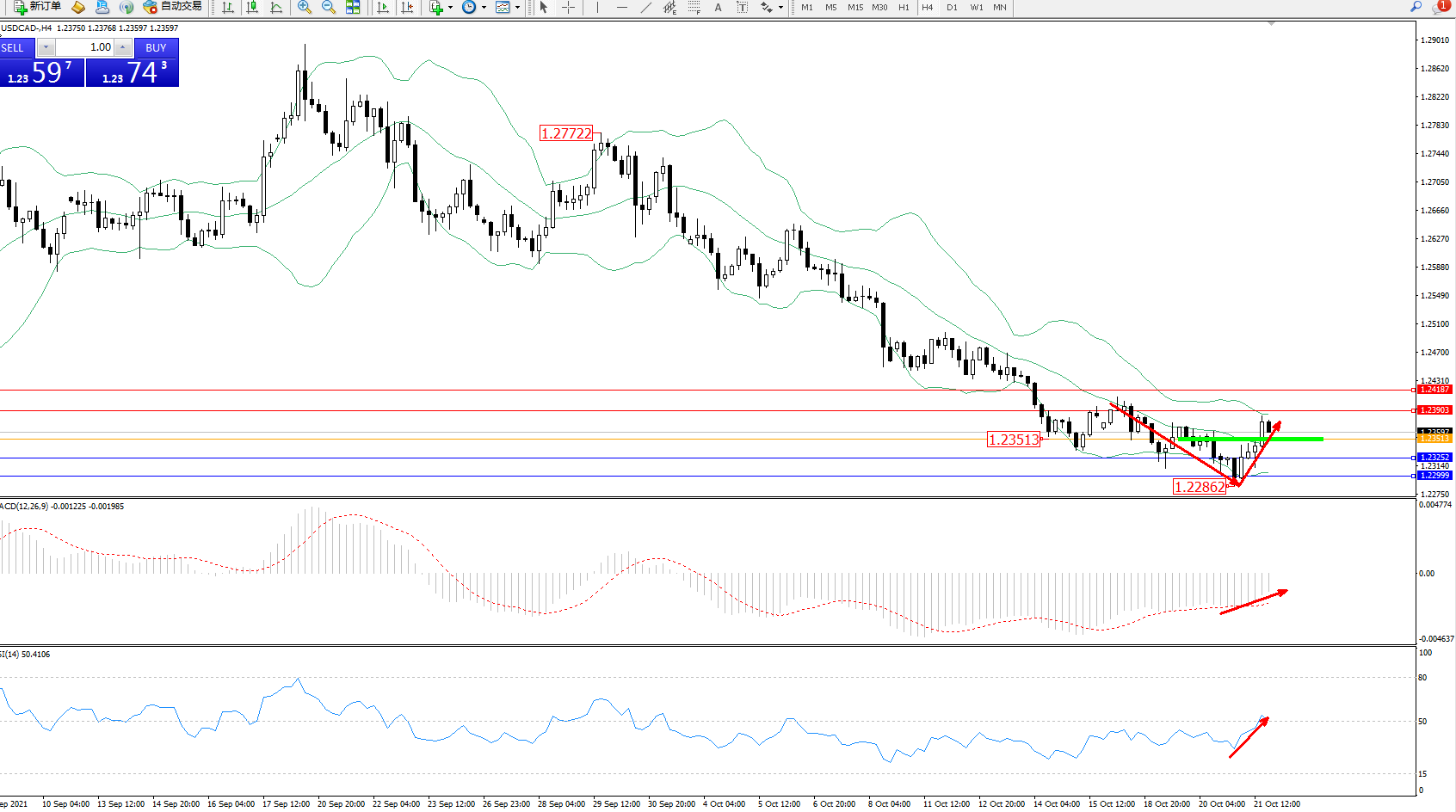 美元加元USDCAD——4小时K线图显示: