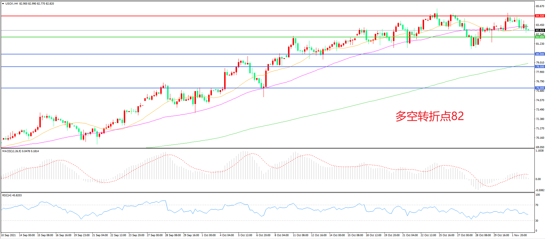 多空转折点:82.00