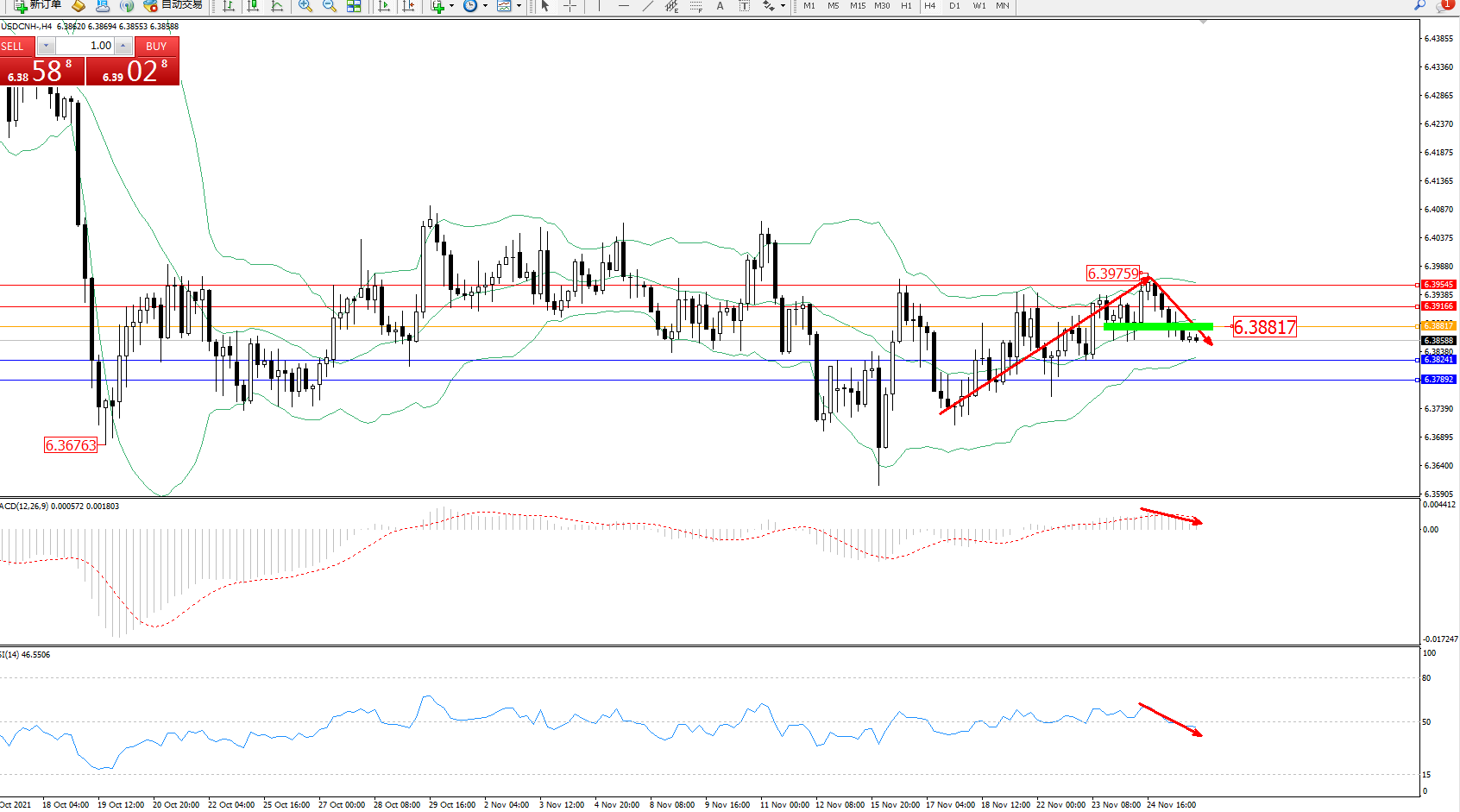 交易策略:6.38817下方看跌,目标6.38241、6.37892