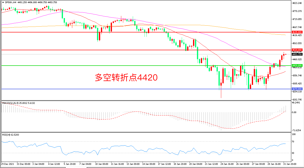 交易策略:在4420.00之上看涨,目标4520.00         4635.00