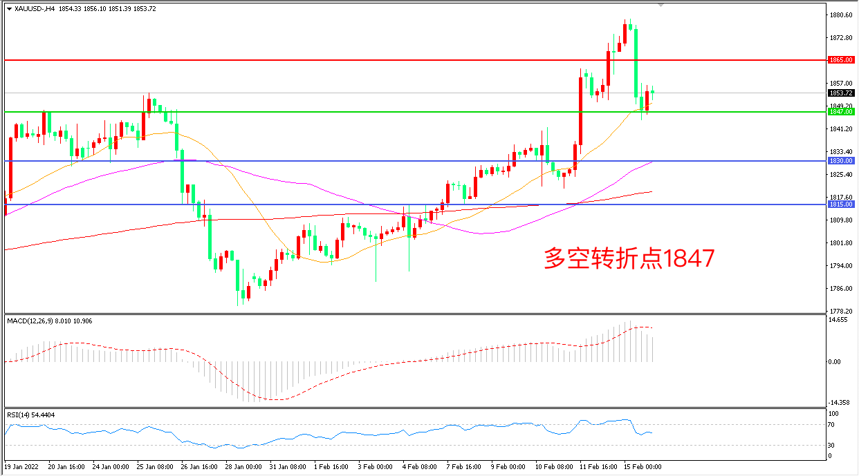 交易策略:在1847.00之上看涨,目标1865.00 1885.00