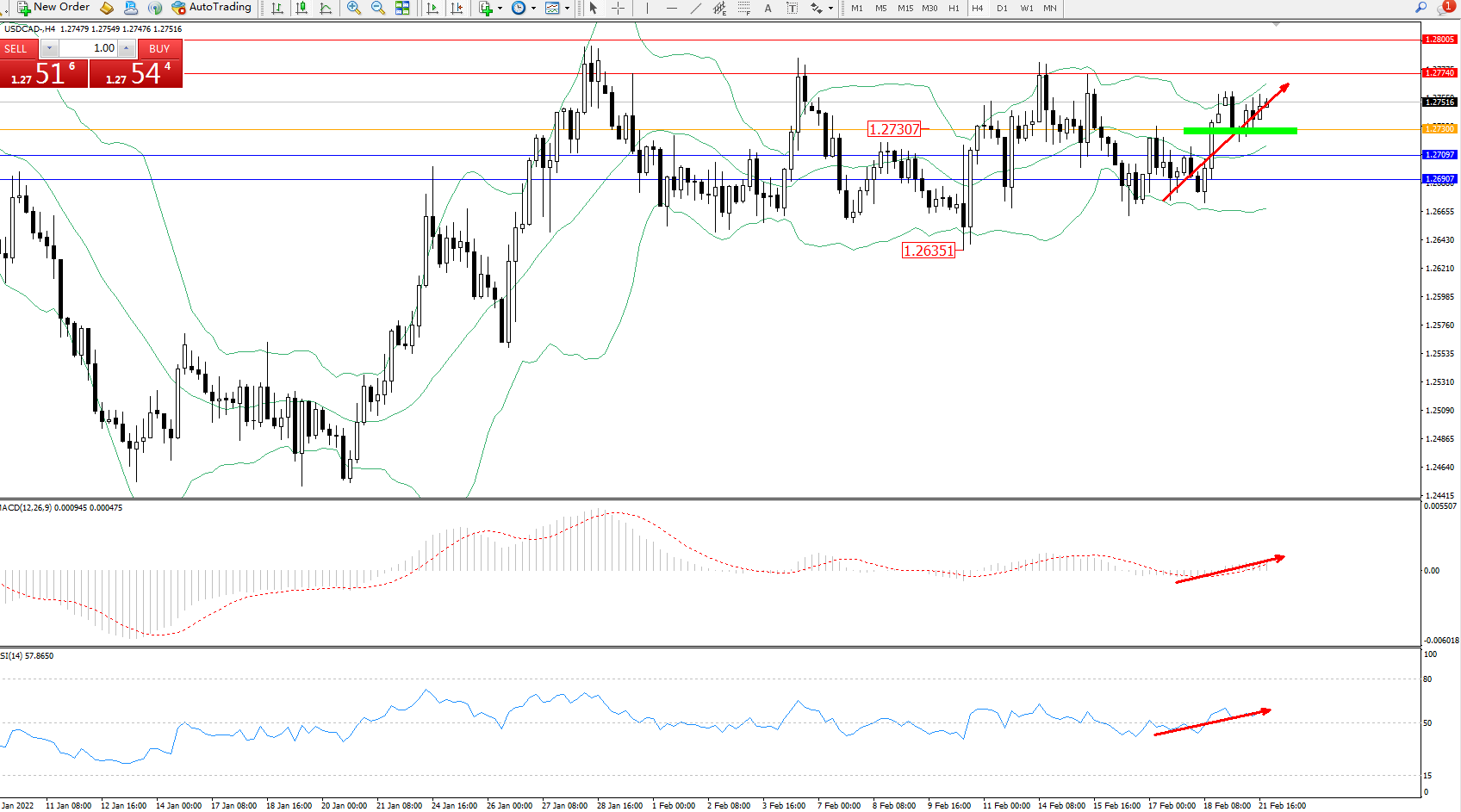 美元加元USDCAD——4小时K线图显示: