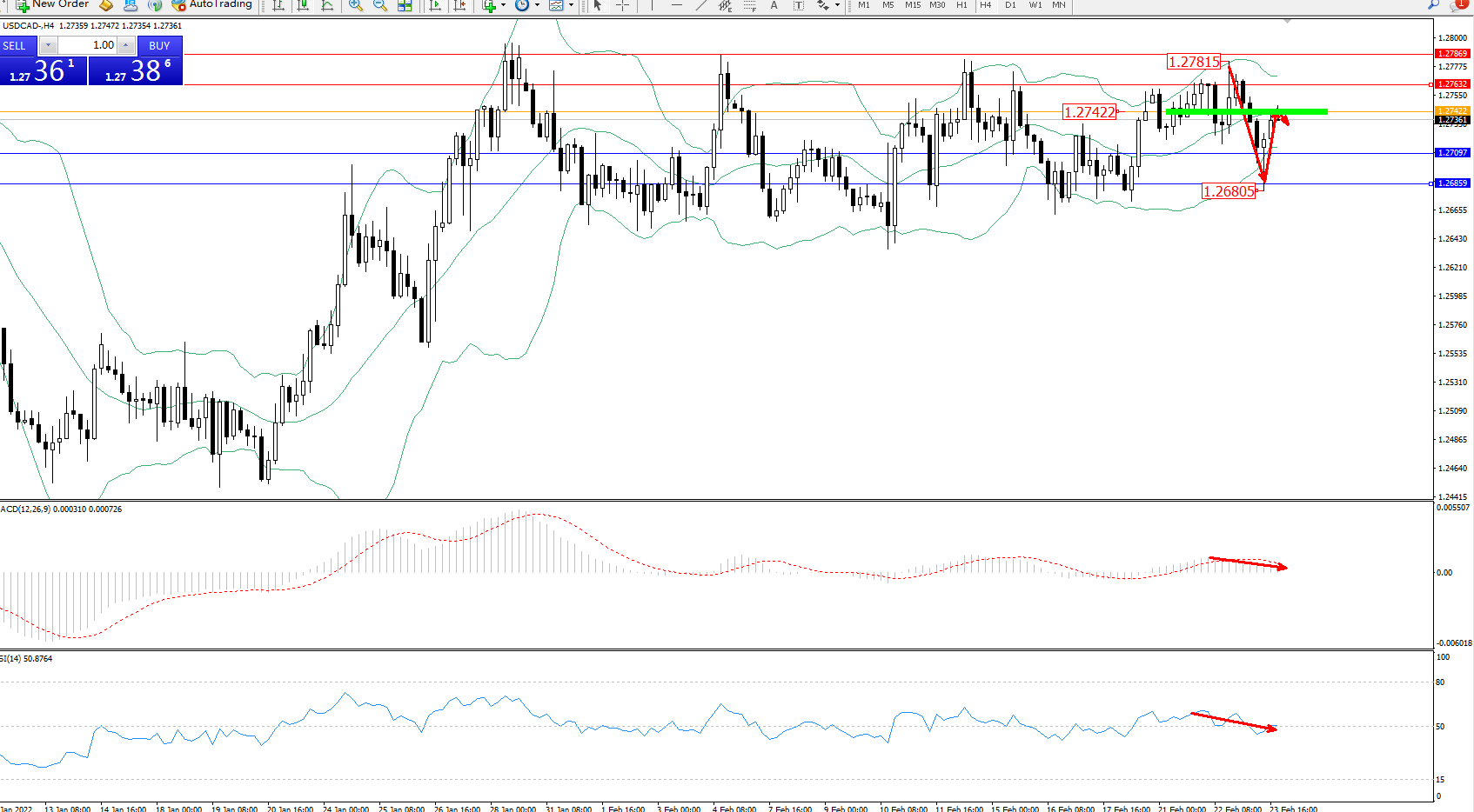 美元加元USDCAD——4小时K线图显示: