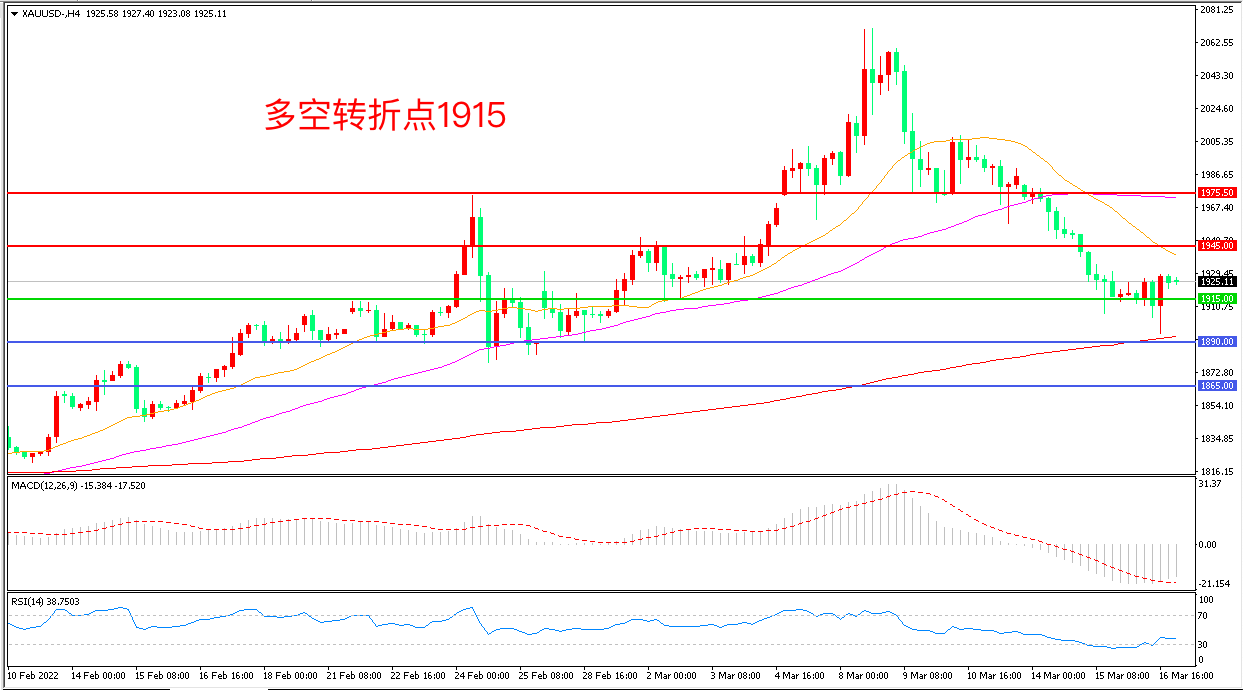 备选策略:在1915.00之下看跌,目标1890.00       1865.00