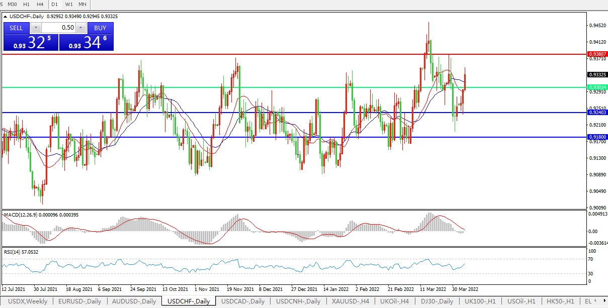 美元兑瑞郎USDCHF 日线图: