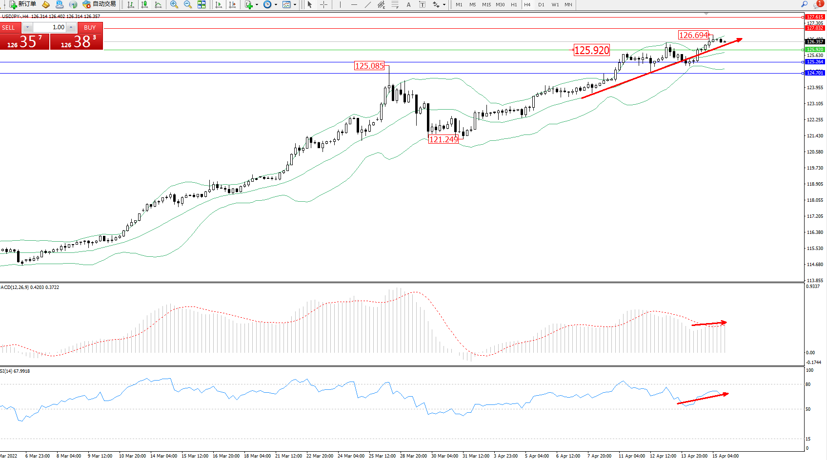 交易策略:125.920上方看涨,目标127.032、127.615