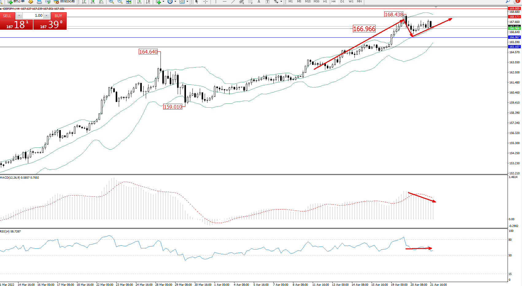 交易策略:166.966上方看涨,目标168.173、169.009