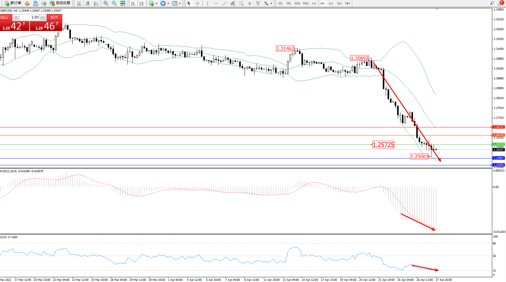 英镑美元GBPUSD ——4小时K线图显示: