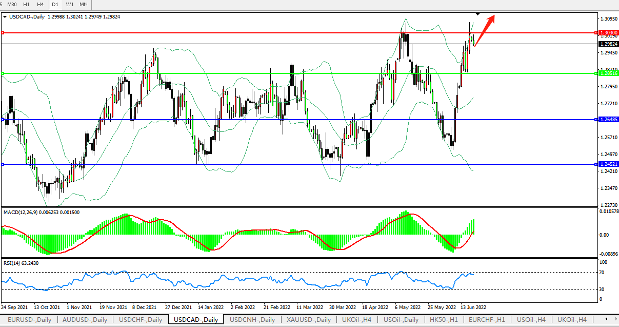 美元兑加元USDCAD 日线图: