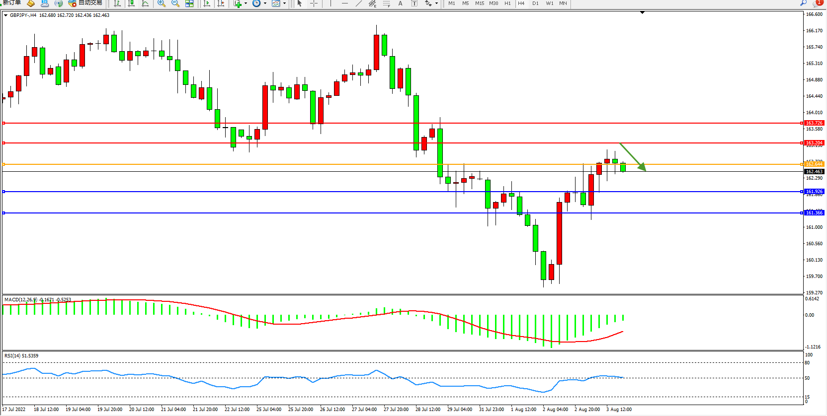 交易策略:162.644下方看跌,目标161.926、161.366