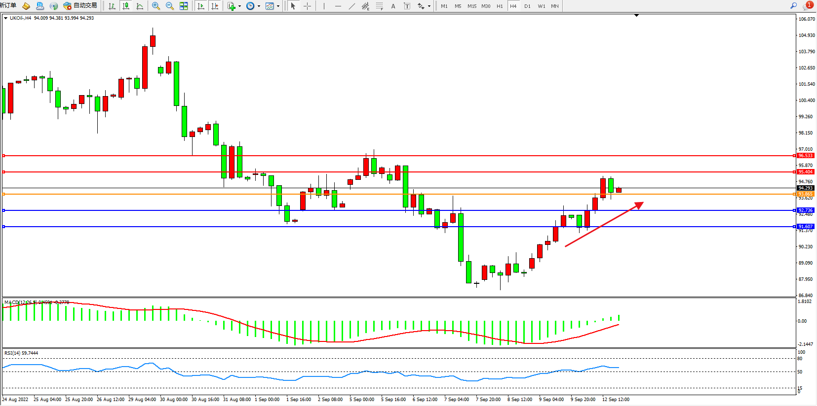 布油UKOil——4小时K线图显示:
