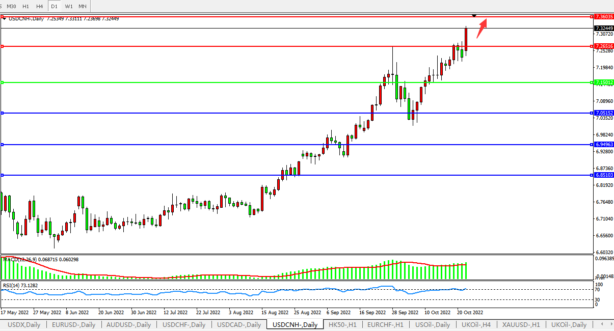 美元人民币USDCNH 日线图: