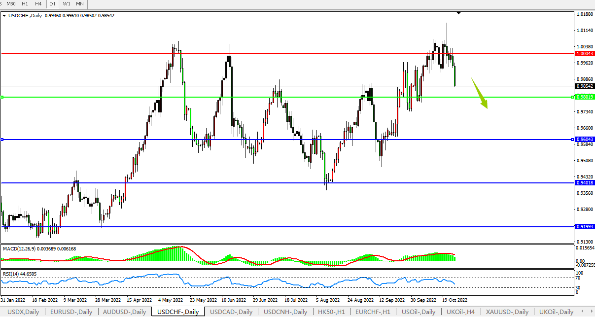 美元兑瑞郎USDCHF 日线图