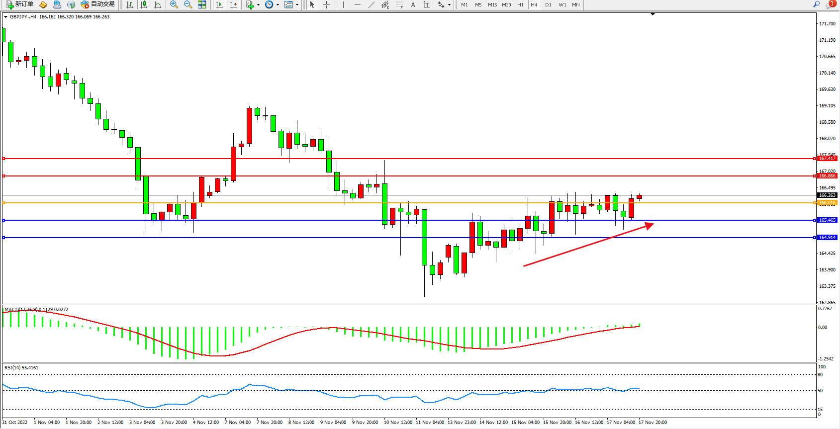交易策略:166.016上方看涨,目标166.866、167.417