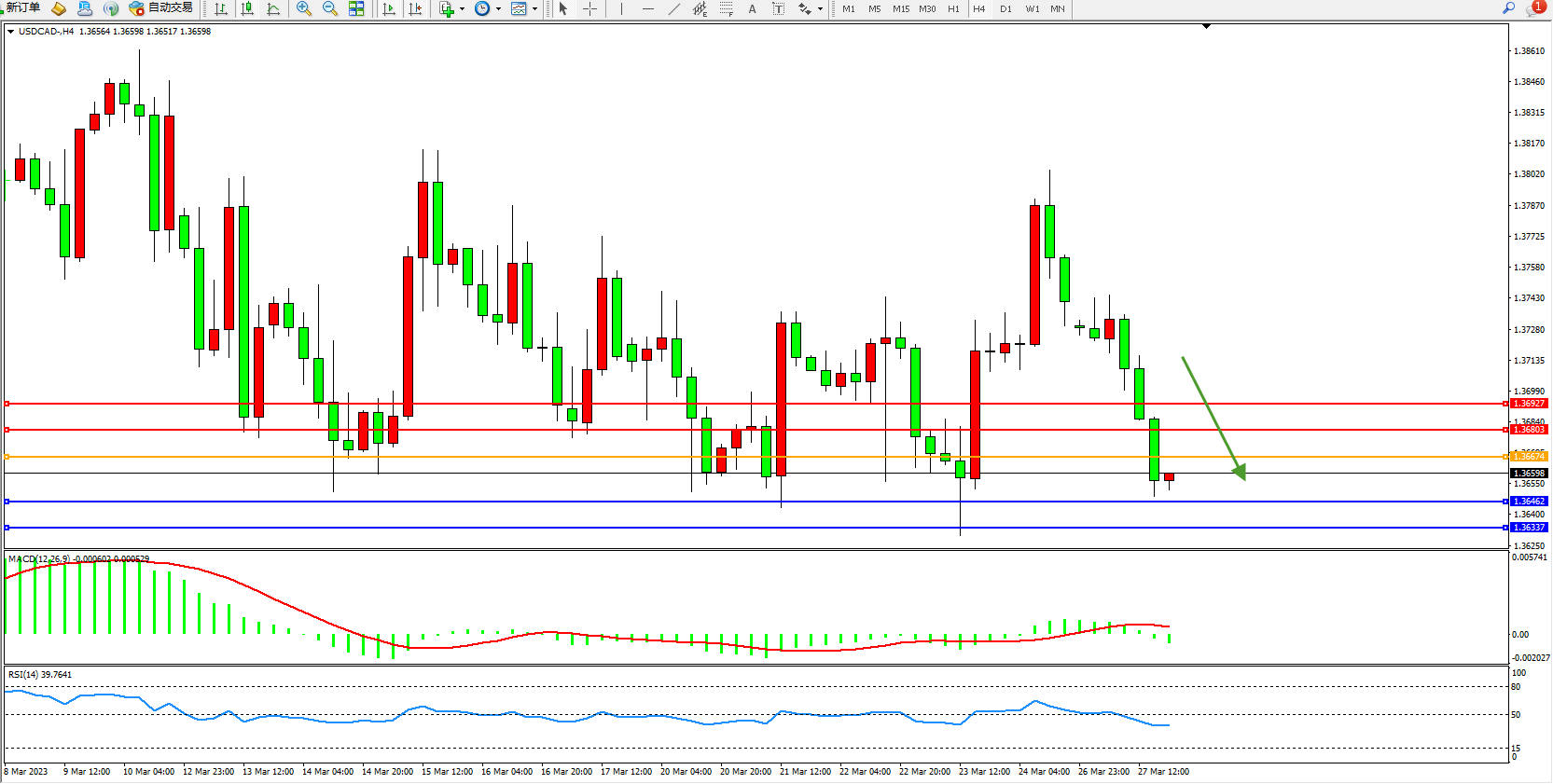 交易策略:1.36674下方看跌,目标1.36462 1.36337