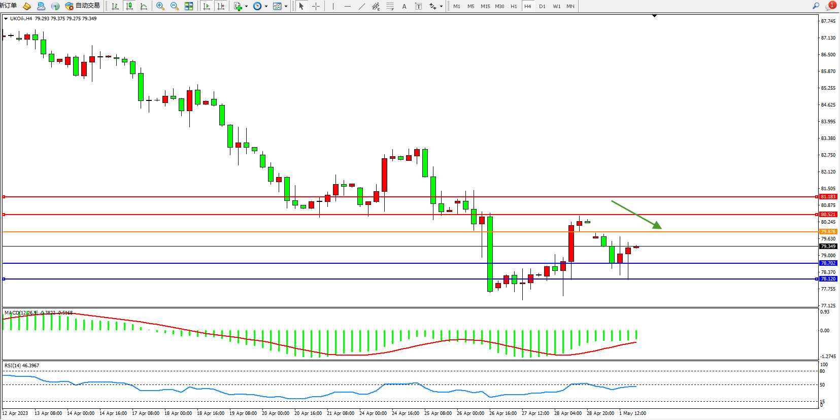布油UKOil——4小时K线图显示: