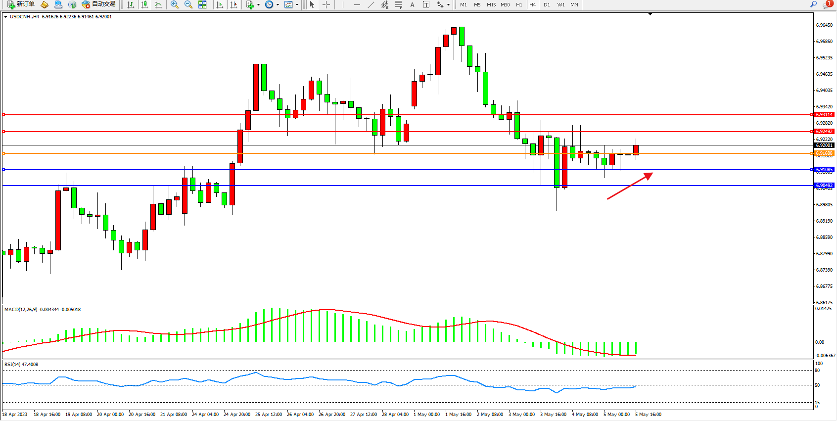 交易策略:6.91688上方看涨,目标6.92492 6.93114