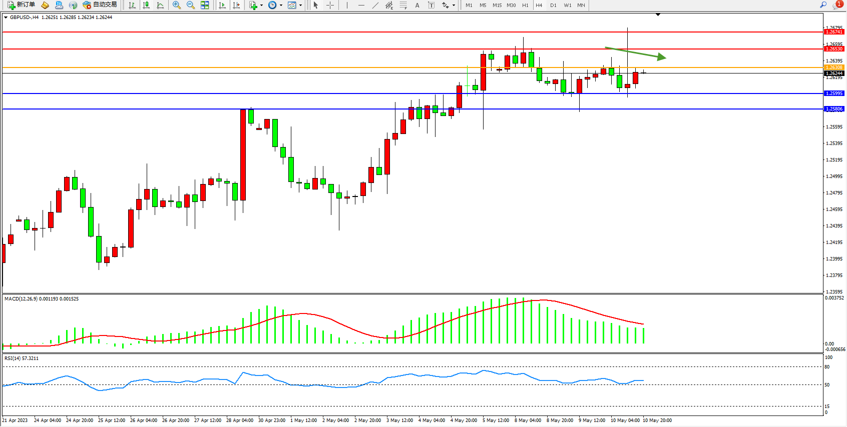 英镑美元GBPUSD ——4小时K线图显示: