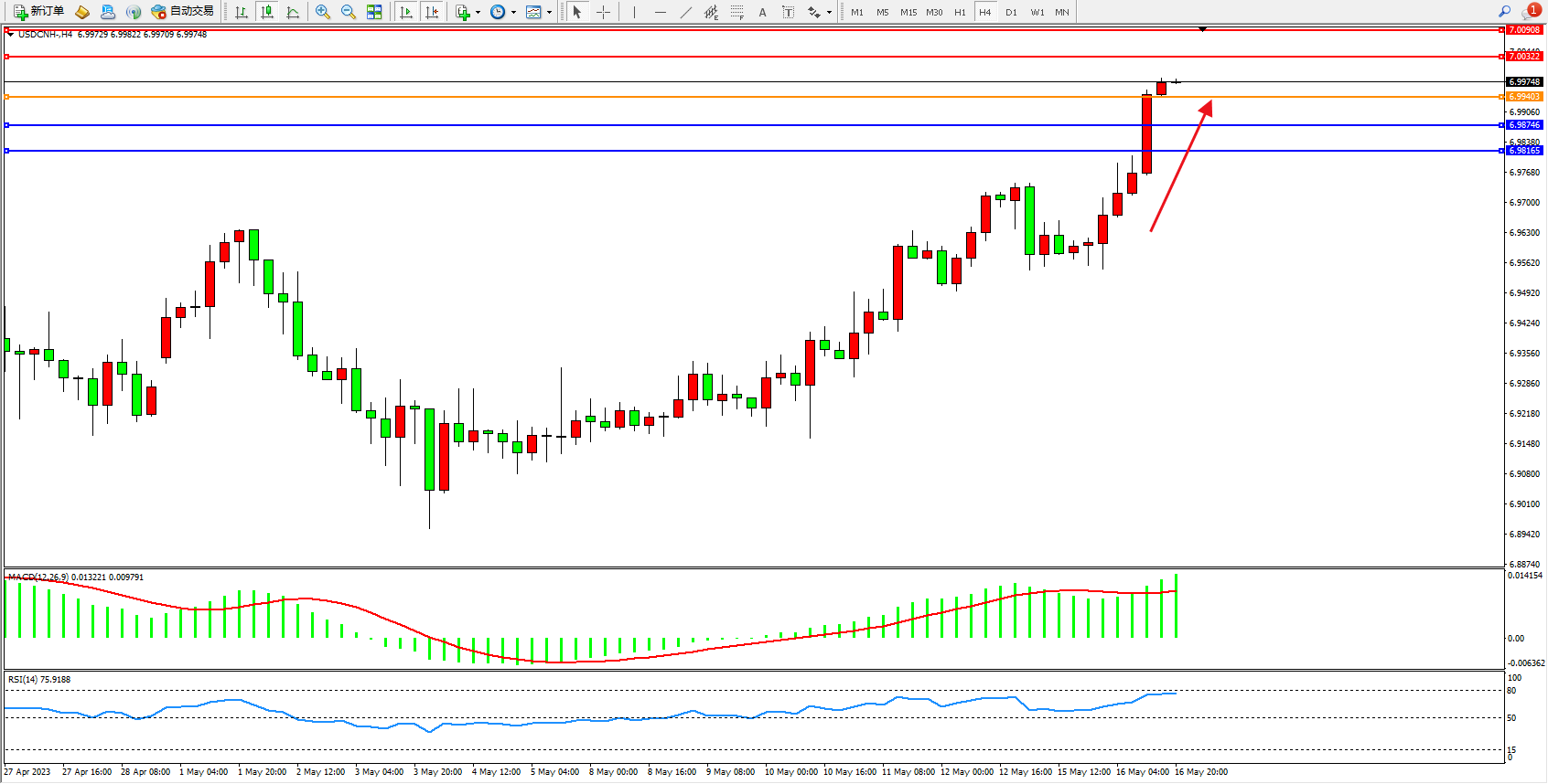 交易策略:6.99403上方看涨,目标7.00322 7.00908