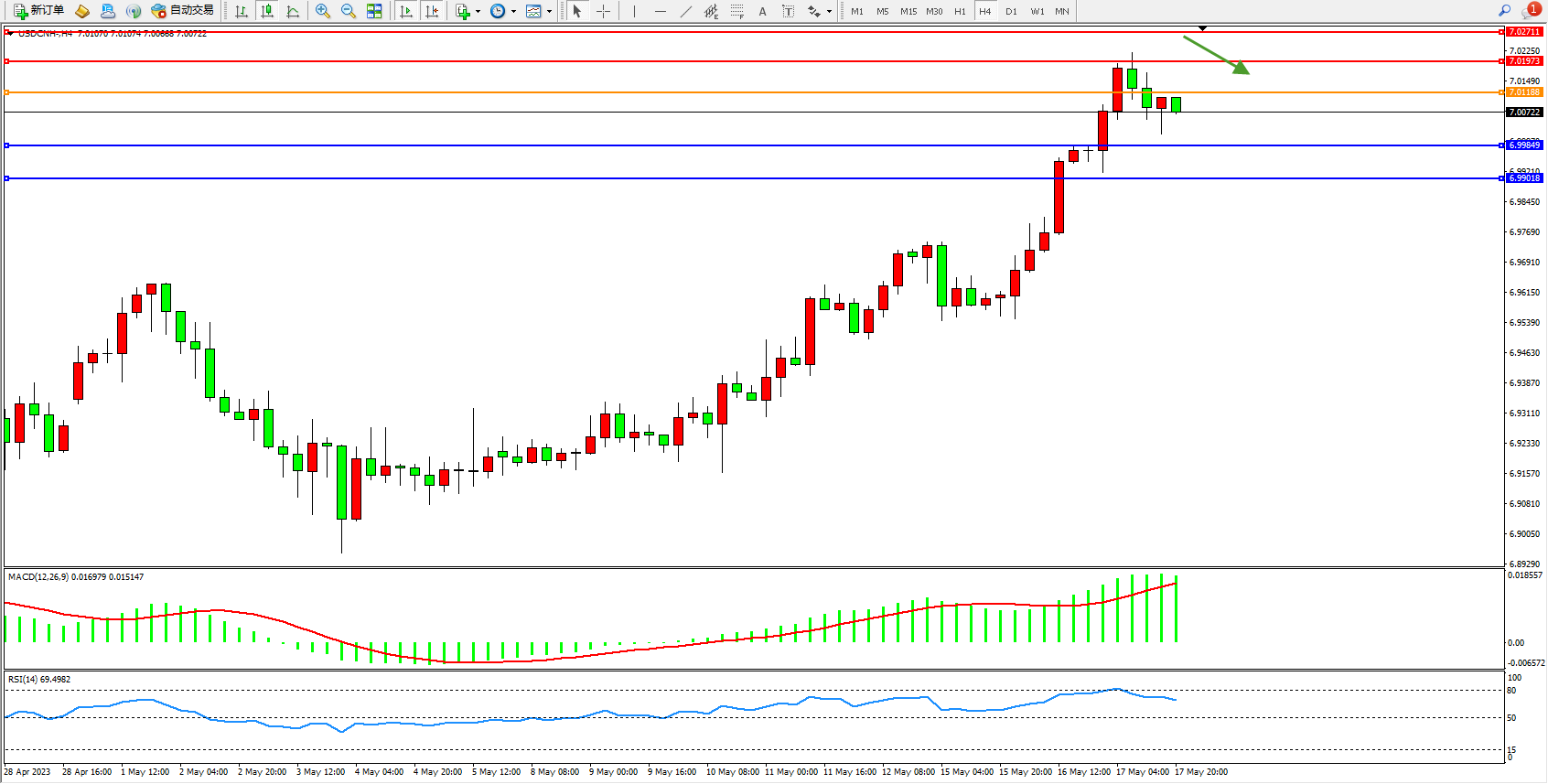 交易策略:7.01188下方看跌,目标6.99849  6.99018