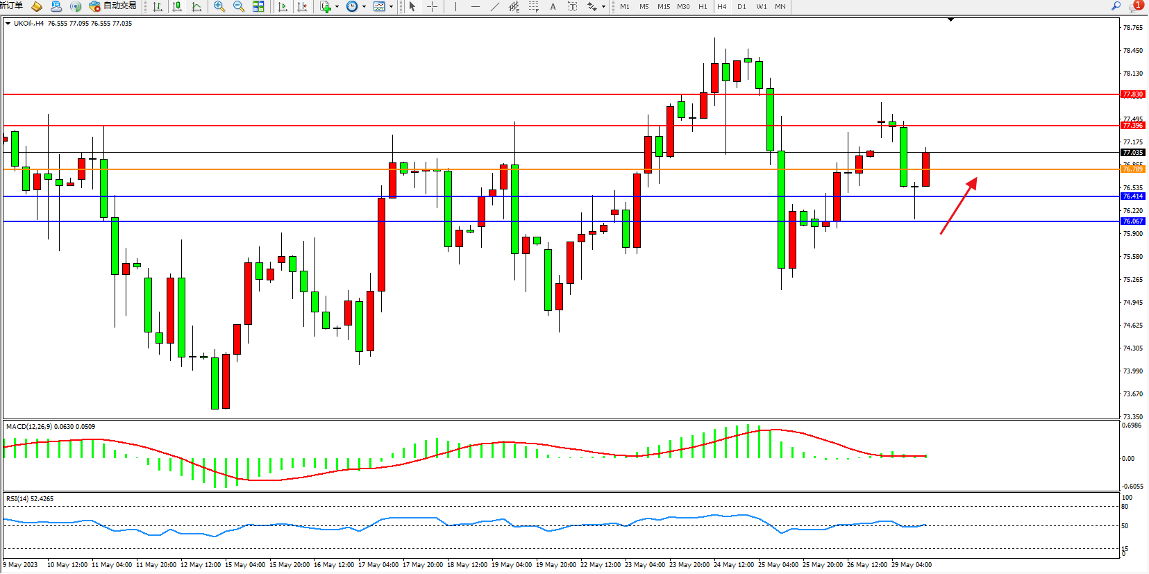 布油UKOil——4小时K线图显示: