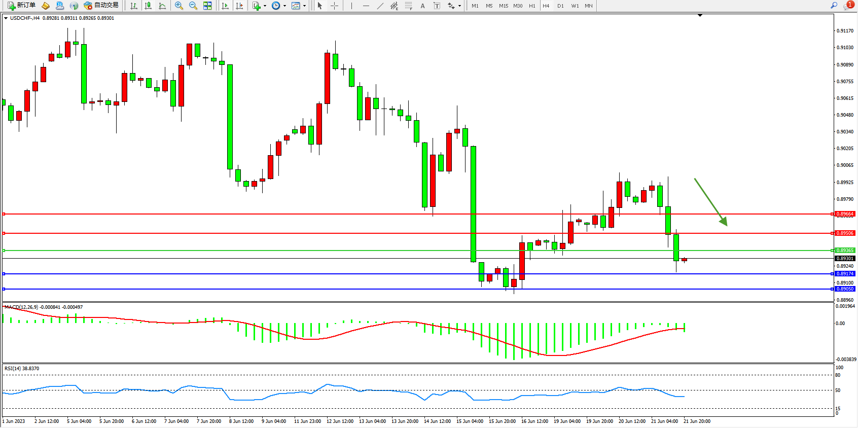 交易策略:0.89365下方看跌,目标0.89174 0.89050