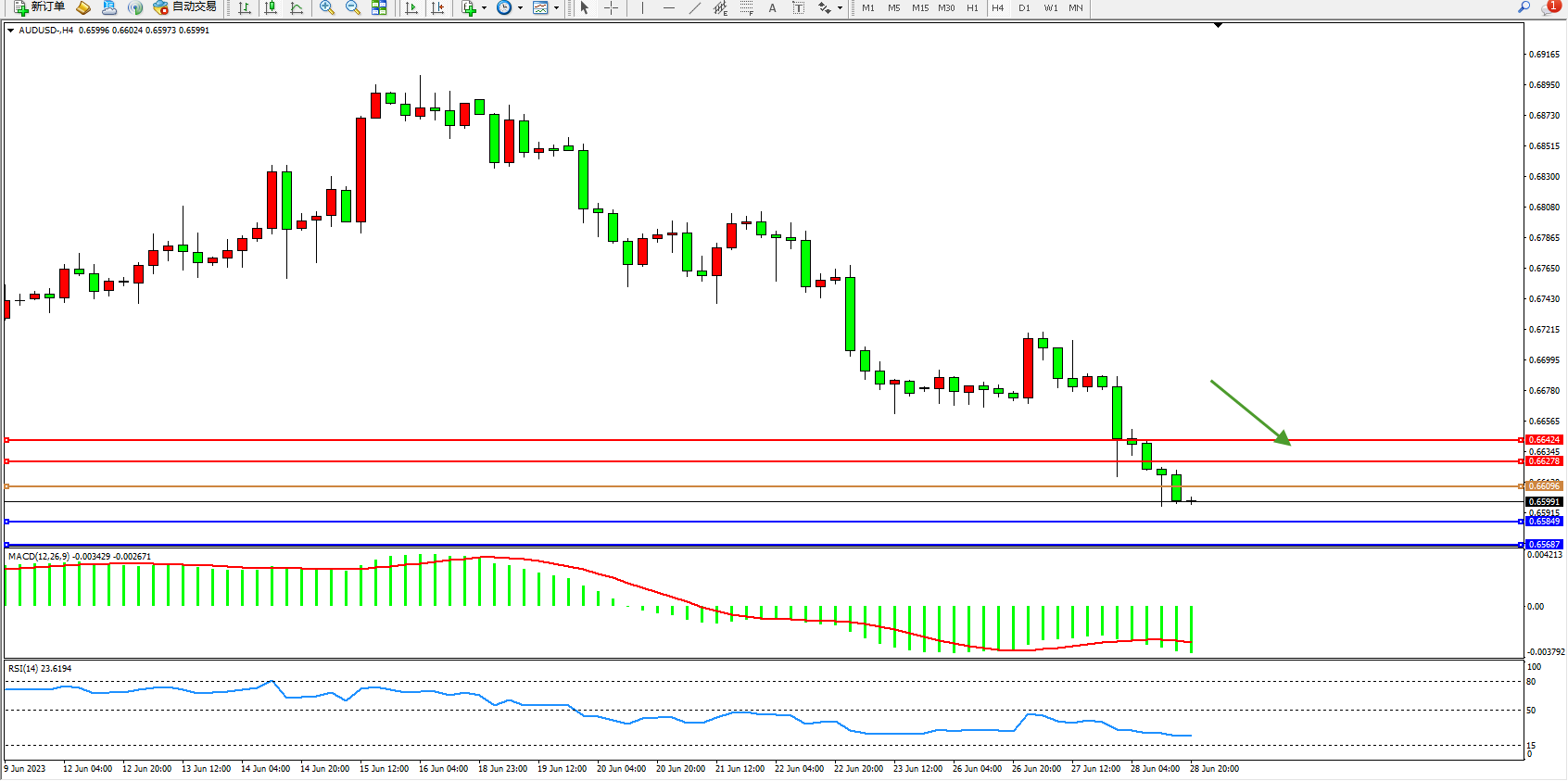 交易策略:0.66096下方看跌,目标0.65849 0.65687