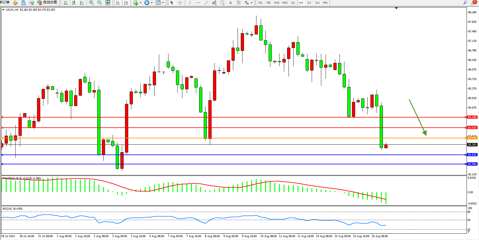 布油UKOil——4小时K线图显示: