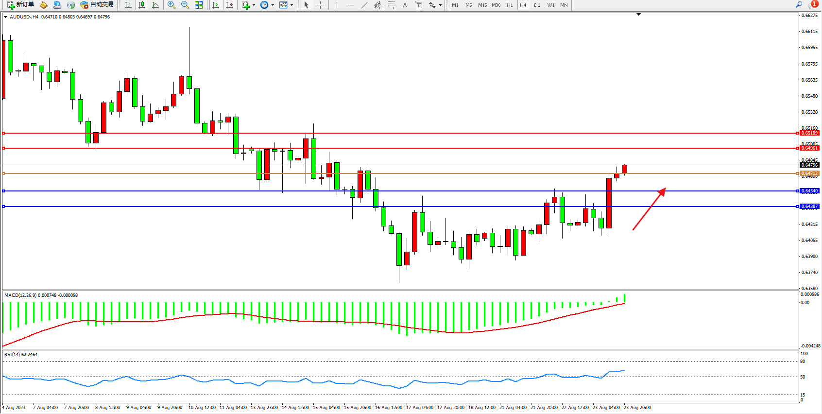 备选策略:0.64712下方看跌,目标0.64540  0.64387
