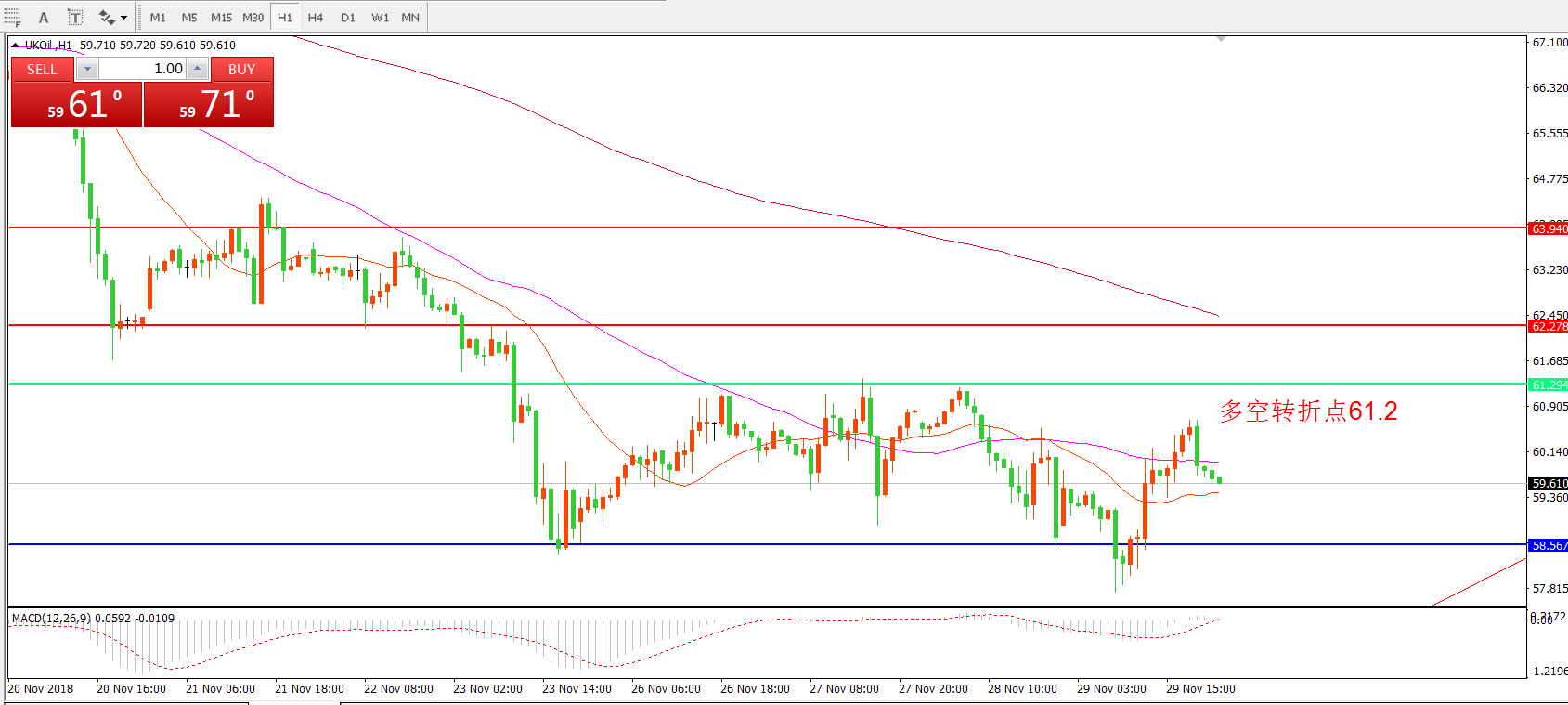 交易策略:在61.2之下看跌,目标58.00 56.50