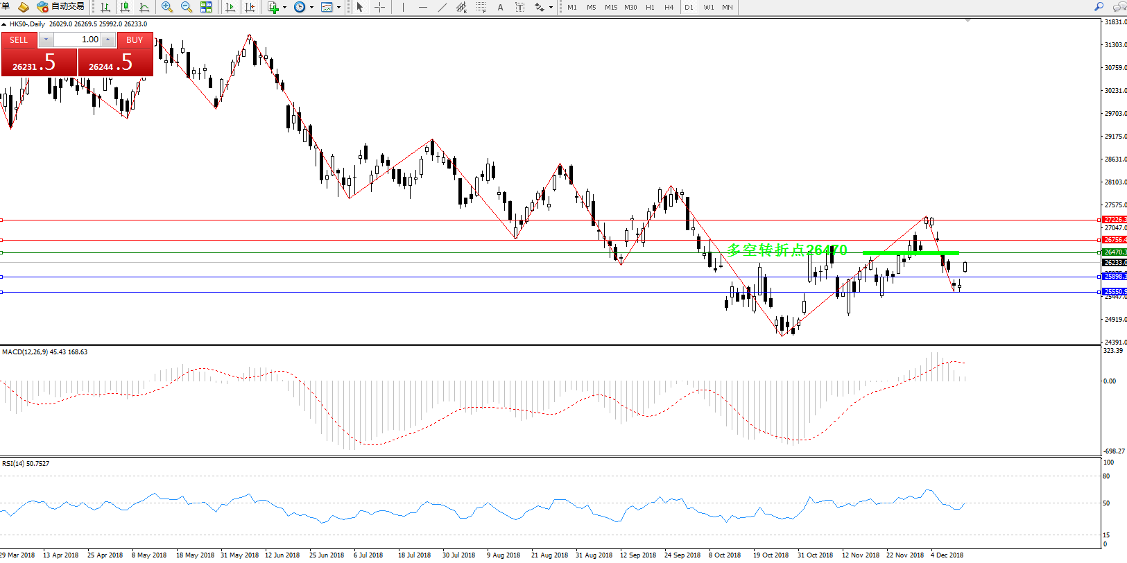 HK50 ——日K线图显示: