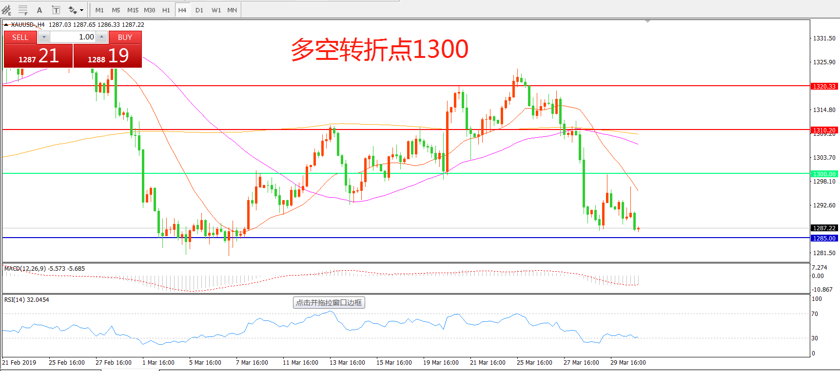 多空转折点:1300.00