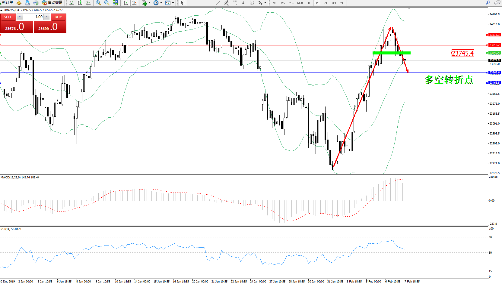 日经225指数2月7日(周五)收盘下跌42.09点,跌幅0.18%,报23831.50点。投资者对亚洲突发公共卫生事件的担忧情绪并未消散,亚洲股市纷纷下跌,根据外媒1月31日-2月6日对51位经济学家的最新调查结果,日本经济第四季度料萎缩4%。2020年第一季度GDP经季节性因素调整折合成年率环比料增长0.8%;之前预估增长0.9%,2020年第二季度GDP经季节性因素调整折合成年率环比料增长1.6%;之前预估增长1.4%;2019年GDP料同比增长1.0%;之前预估增长1.0%,2020年GDP料同比增长0.5%;之前预估增长0.4%,2020年第一季度CPI料同比上涨0.6%;之前预估上涨0.6%。