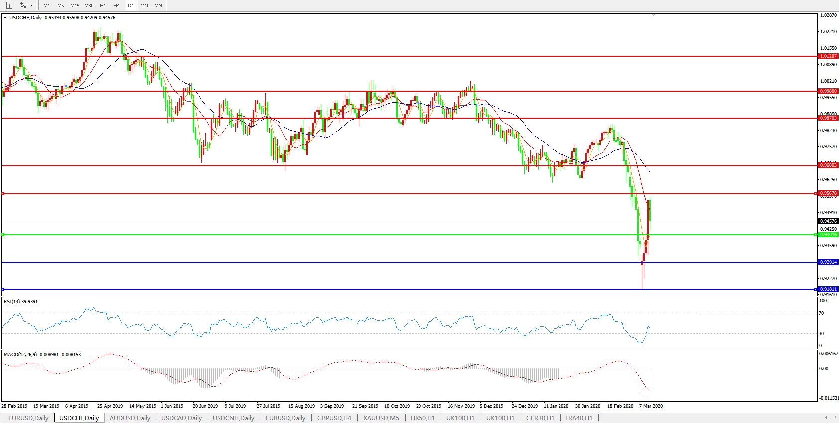 美元兑瑞郎USDCHF 日线图: