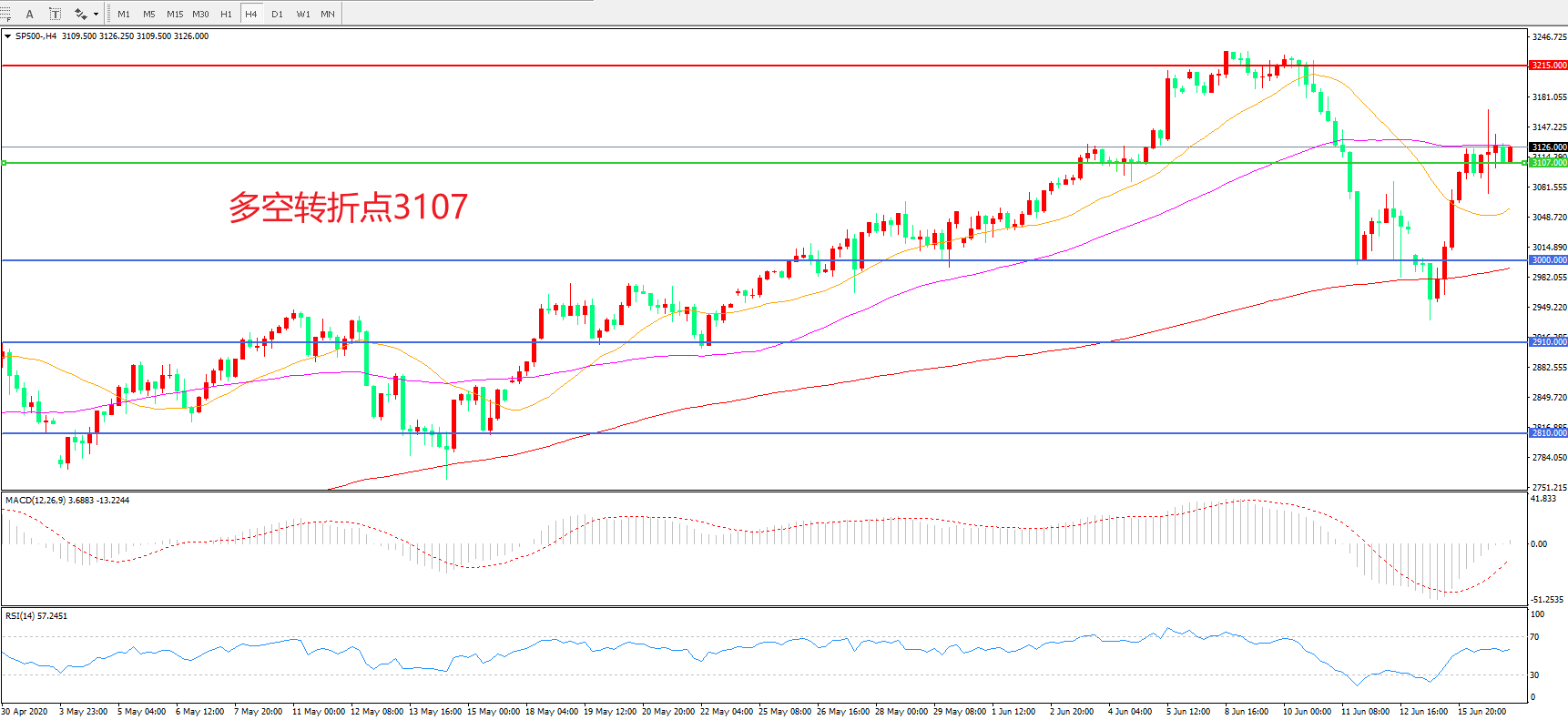 多空转折点:3107.00