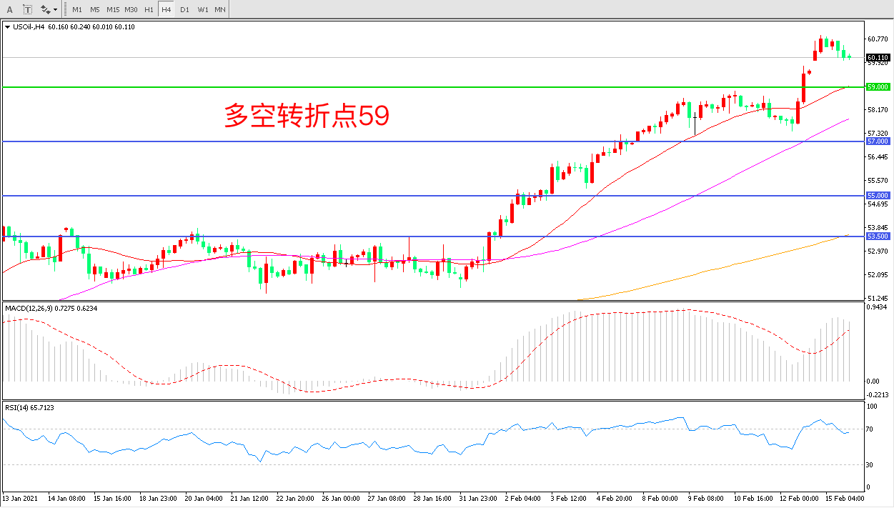 交易策略:在59.00之上看涨,目标62.00 65.00